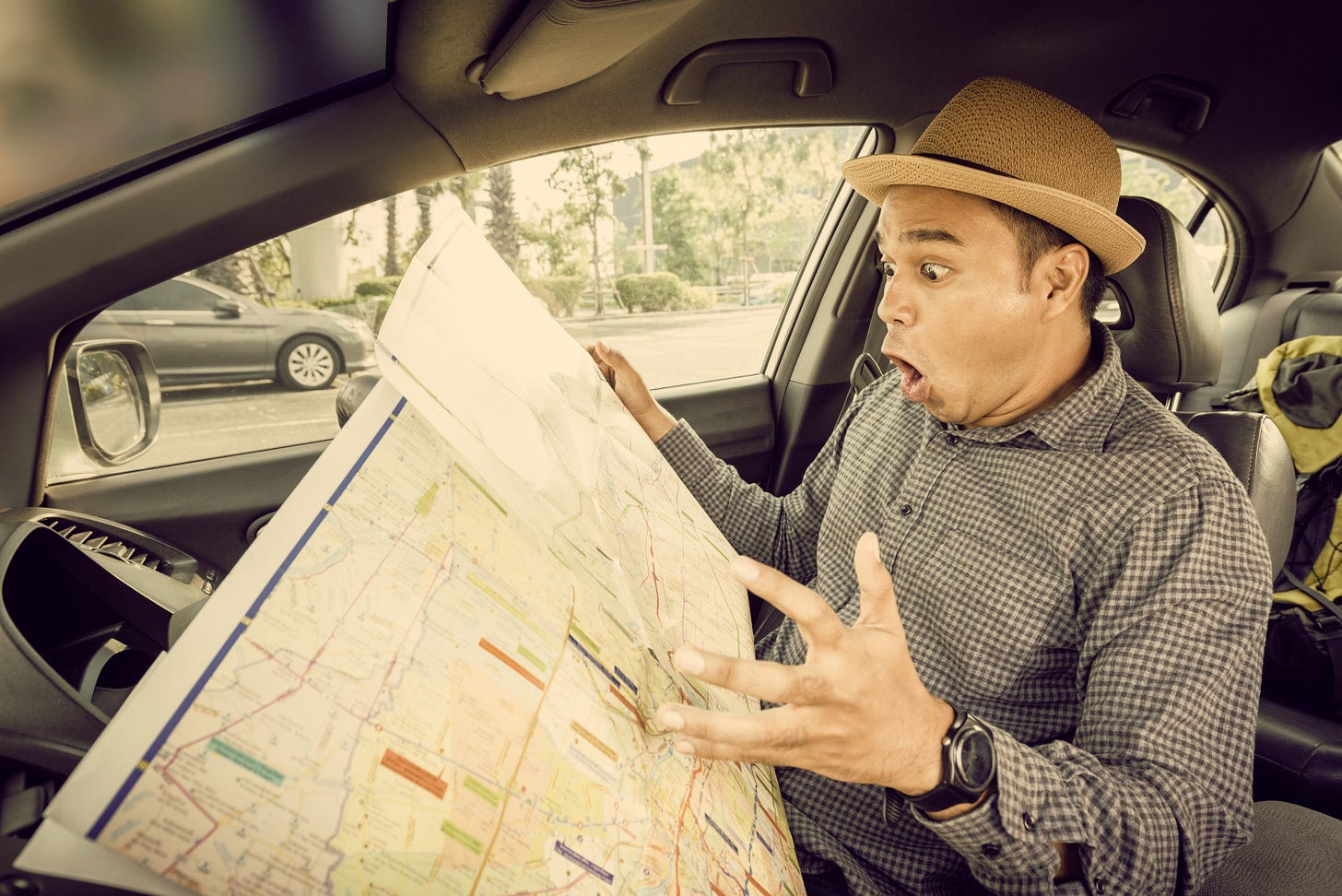“Excuse me,” your Dad yells out the car window, full family in tow, as he disrupts an unsuspecting stranger’s walk. He may or may not have a well-worn, well-used physical map in his hand while yelling.